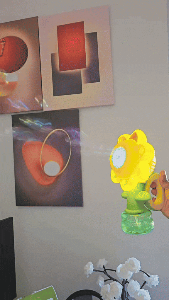 Simply fill the bubble reservoir with bubble solution, press the button, and watch the magic happen! The built-in motor automatically creates a continuous stream of bubbles while the 7-color LED lights glow, making playtime even more exciting. The device is rechargeable via USB, so no disposable batteries are needed. Lightweight and portable, it’s perfect for indoor play, bath time, or outdoor fun.